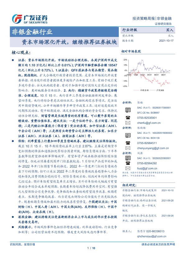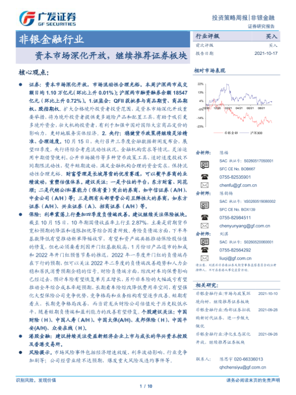 【广发证券】【20211017】非银金融行业:资本市场深化开放,继续推荐证券板块-10页