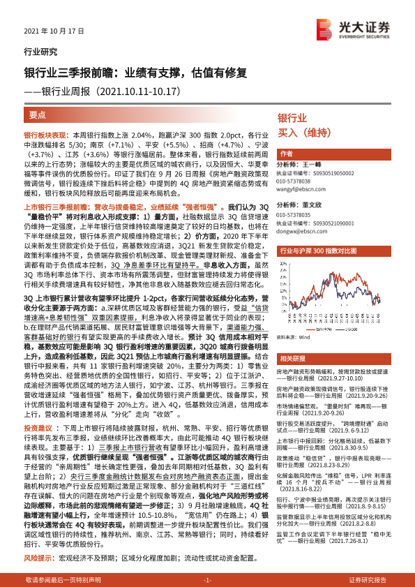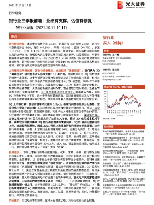 【光大证券】【20211017】银行业三季报前瞻:业绩有支撑,估值有修复-13页