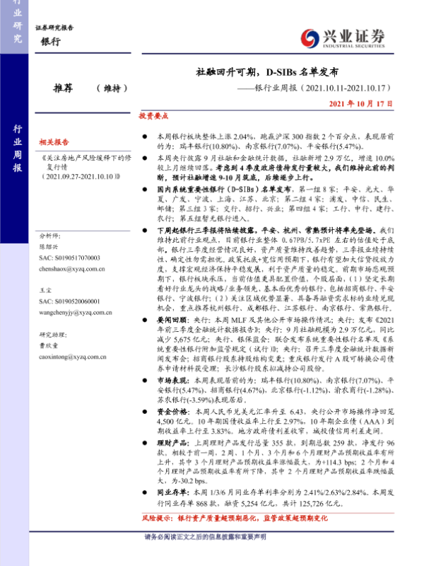 【兴业证券】【20211017】银行业周报:社融回升可期,D-SIBs名单发布-15页