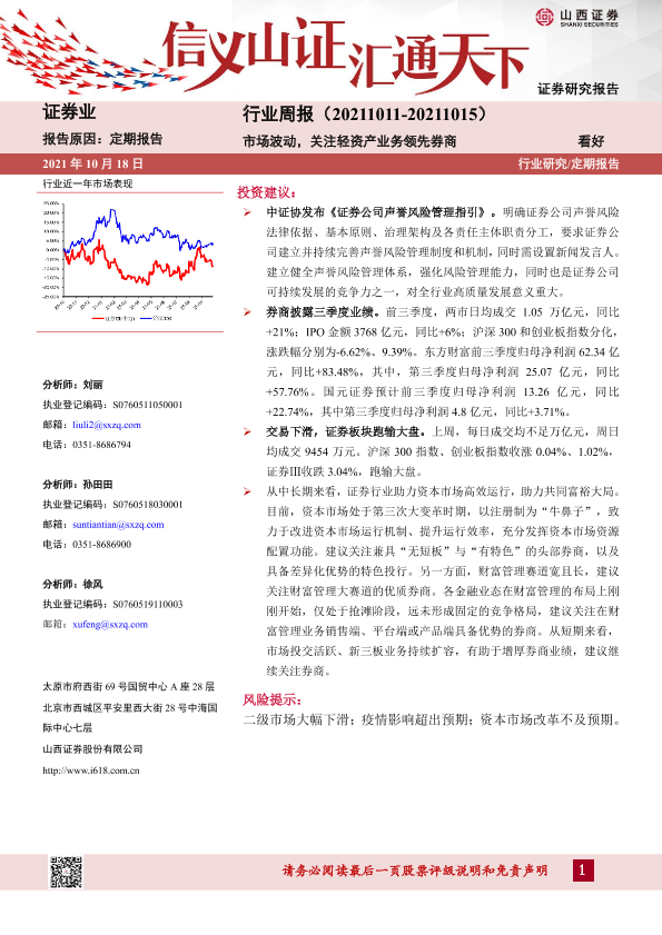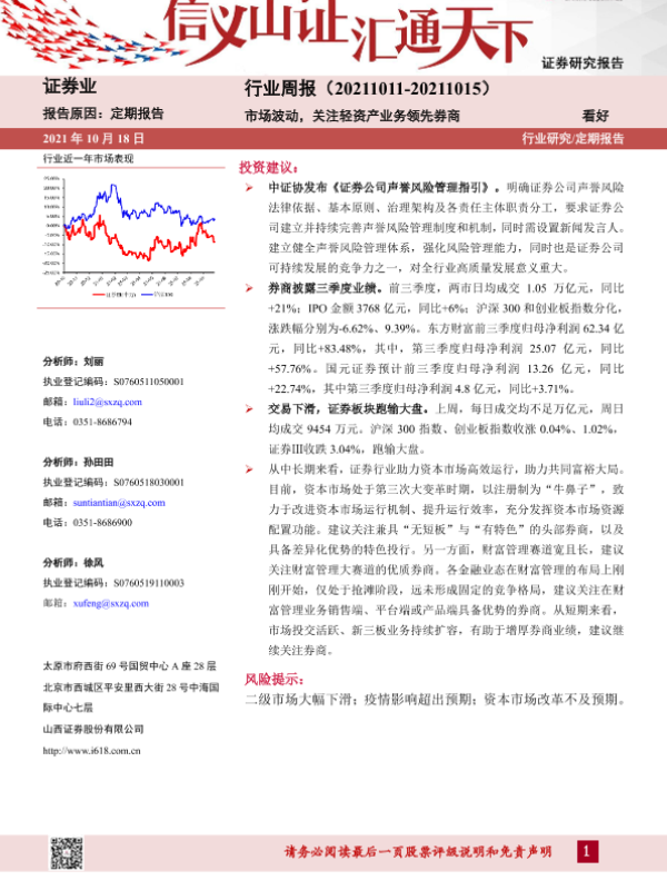 【山西证券】【20211018】证券行业周报:市场波动,关注轻资产业务领先券商-8页