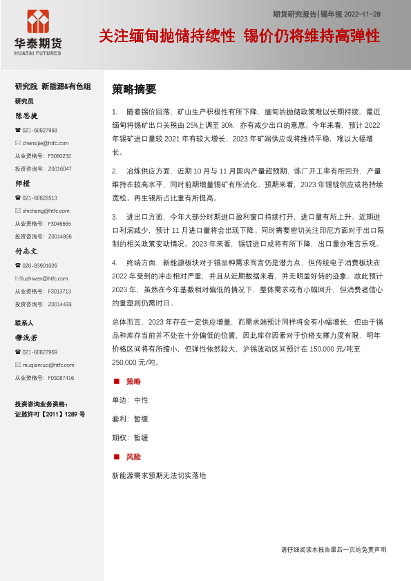 【华泰期货】【20221128】锡年报:关注缅甸抛储持续性,锡价仍将维持高弹性-17页