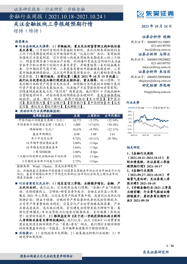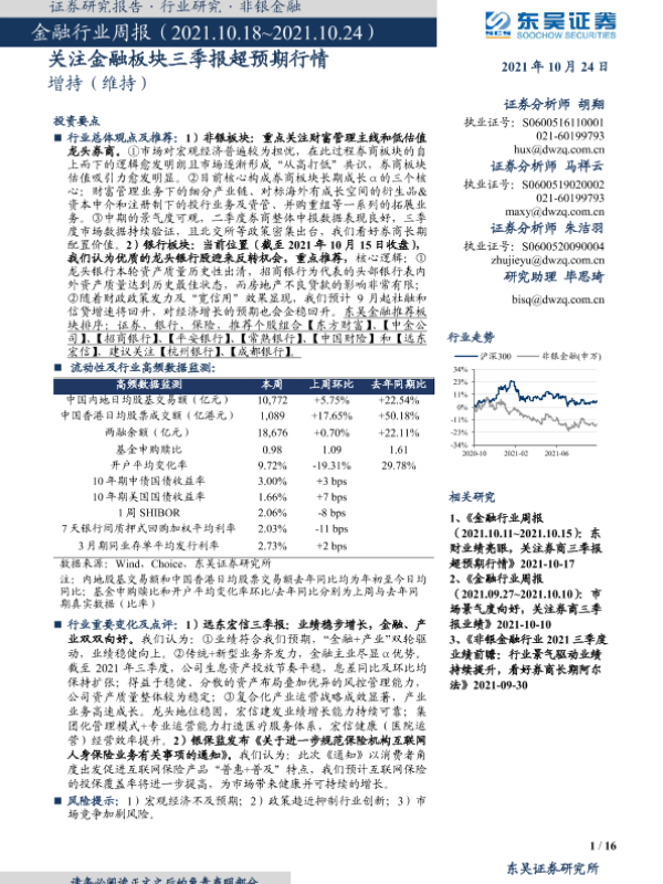 【东吴证券】【20211024】金融行业周报:关注金融板块三季报超预期行情-16页
