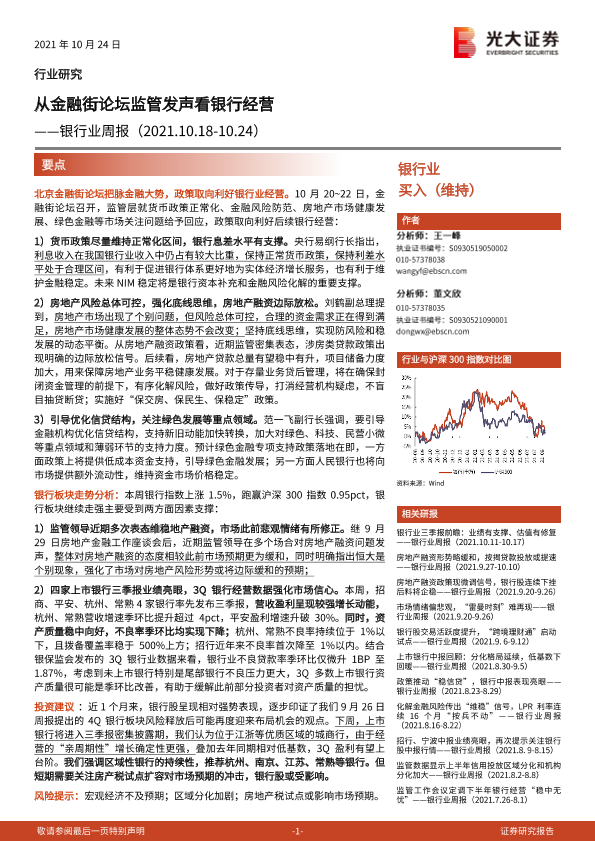 【光大证券】【20211024】从金融街论坛监管发声看银行经营-13页