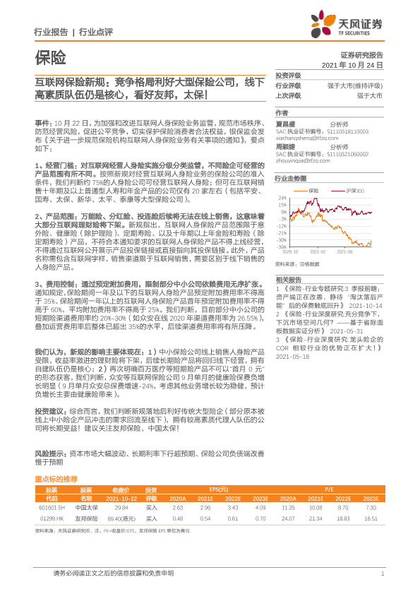 【天风证券】【20211024】互联网保险新规:竞争格局利好大型保险公司,线下高素质队伍仍是核心-2页