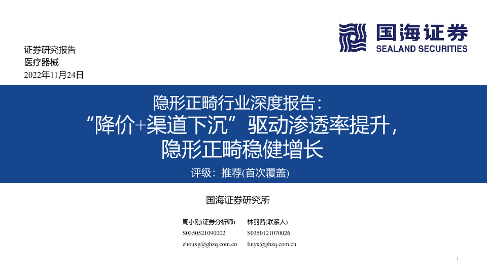 【国海证券】【20221124】隐形正畸行业深度报告:“降价+渠道下沉”驱动渗透率提升,隐形正畸稳健增长-45页