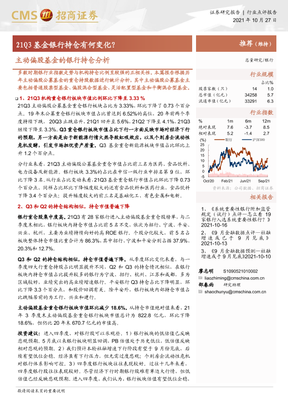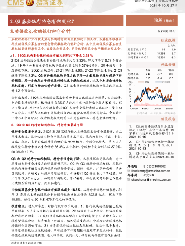 【海通证券】【20211027】主动偏股基金的银行持仓分析-21Q3基金银行持仓有何变化?-5页
