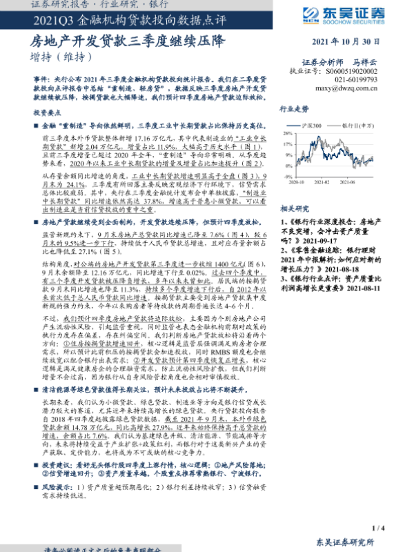 【东吴证券】【20211030】2021Q3金融机构贷款投向数据点评-4页