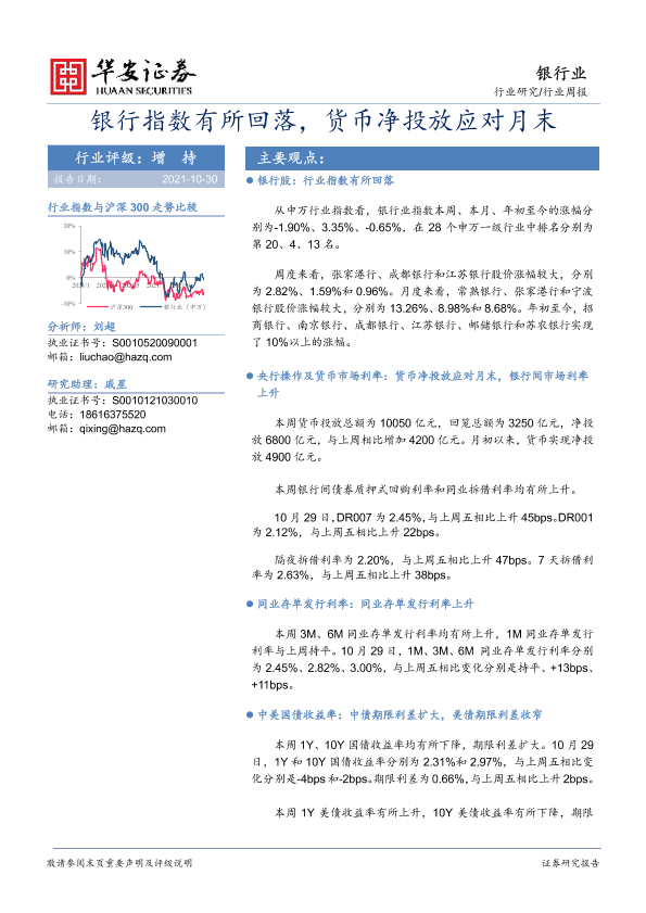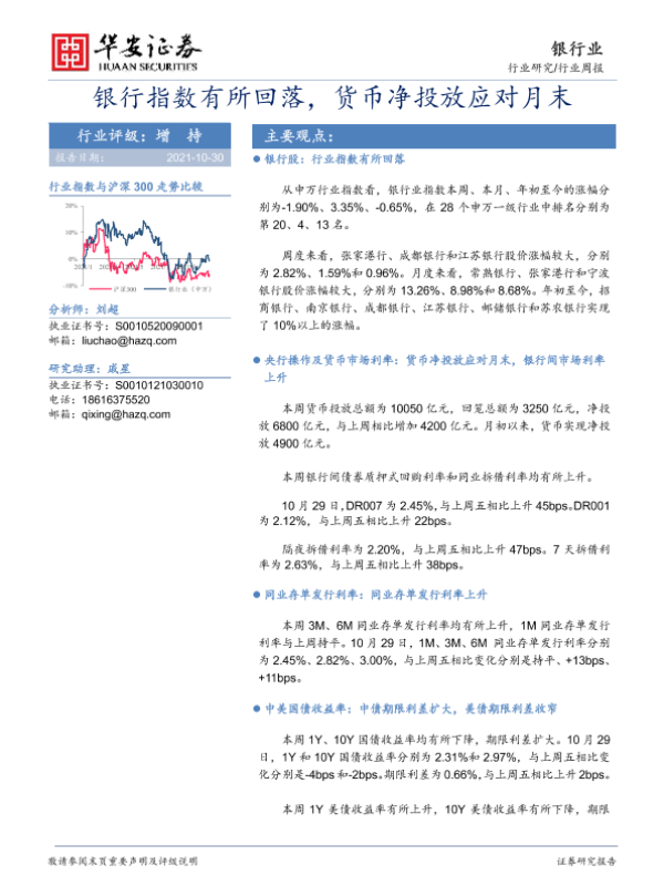 【华安证券】【20211030】银行指数有所回落,货币净投放应对月末-24页