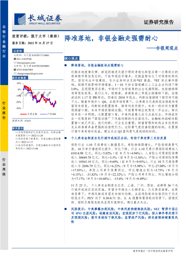 【长城证券】【20221127】非银行业周观点:降准落地,非银金融走强需耐心-33页