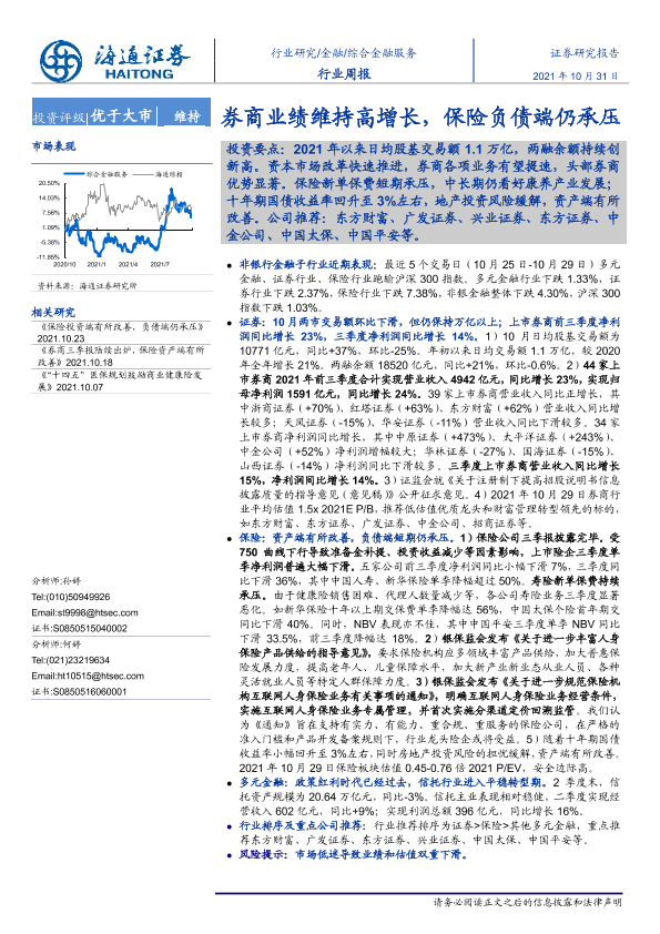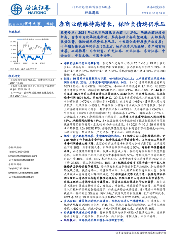 【海通证券】【20211031】券商业绩维持高增长,保险负债端仍承压-10页