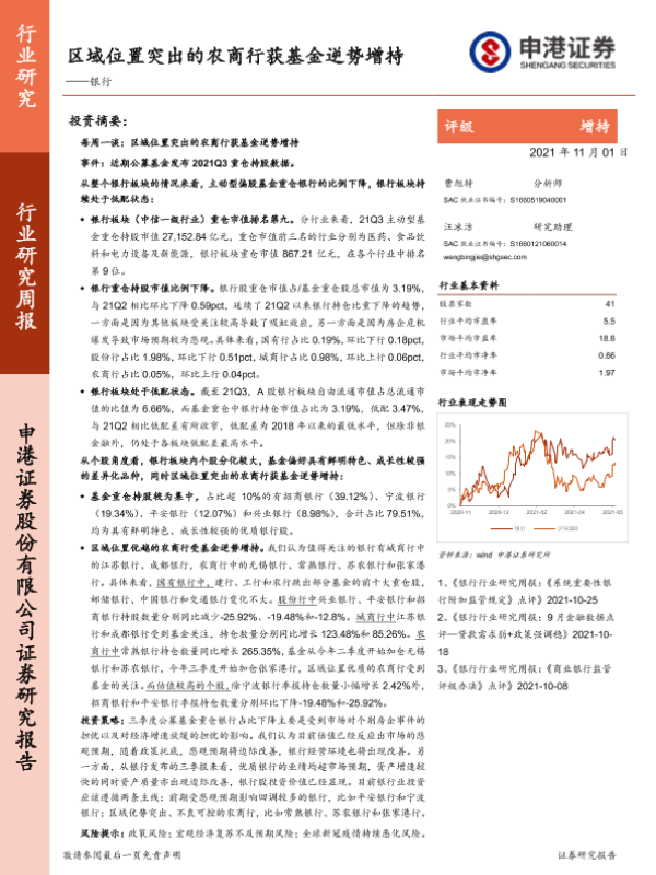 【申港证券】【20211101】银行行业研究周报:区域位置突出的农商行获基金逆势增持-13页