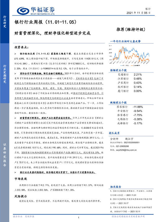 【华福证券】【20211105】银行行业周报:财富管理深化,理财净值化转型逐步完成-15页