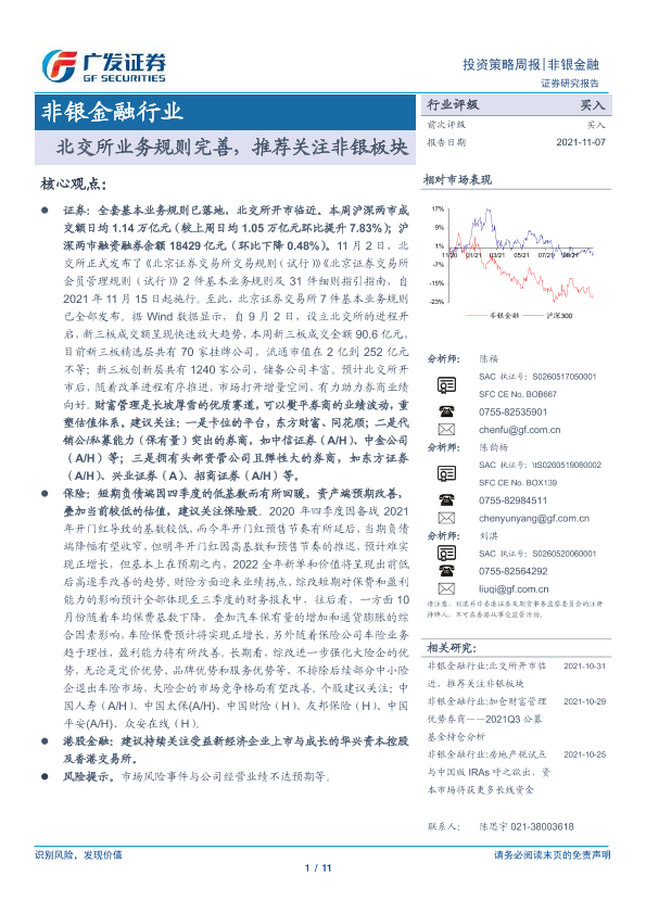 【广发证券】【20211107】非银金融行业投资策略周报:北交所业务规则完善,推荐关注非银板块-11页