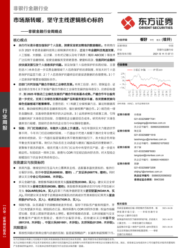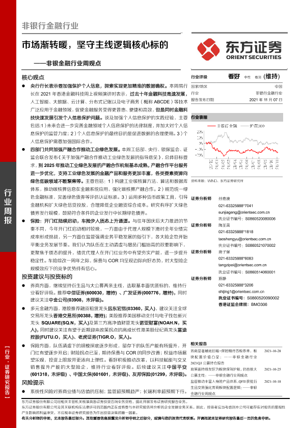 【东方证券】【20211107】非银金融行业周观点:市场渐转暖,坚守主线逻辑核心标的-11页