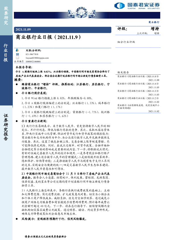 【国泰君安证券】【20211109】商业银行业日报-3页