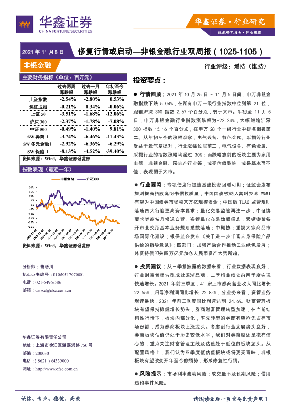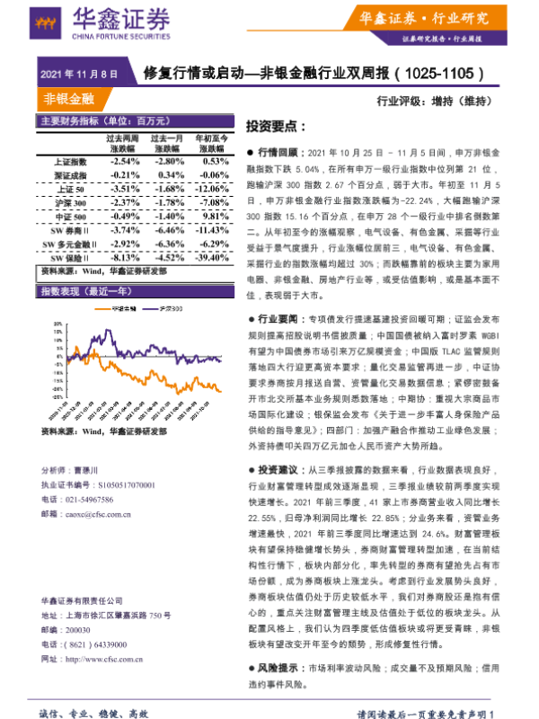 【华鑫证券】【20211108】非银金融行业双周报:修复行情或启动-16页