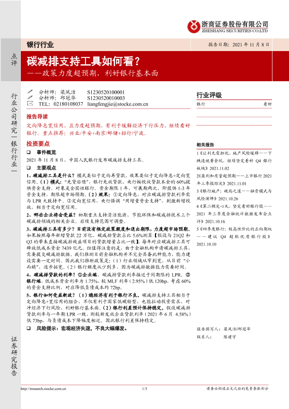 【浙商证券】【20211108】政策力度超预期,利好银行基本面:碳减排支持工具如何看?-3页