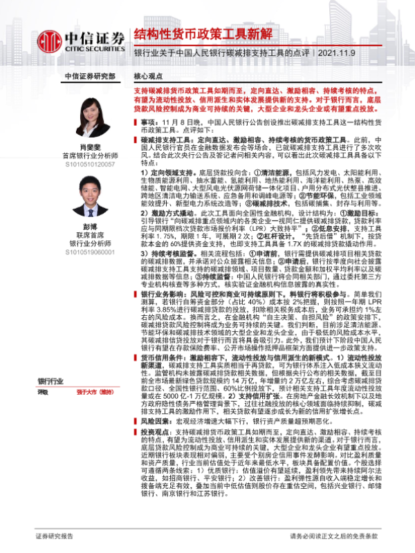 【中信证券】【20211109】银行业关于中国人民银行碳减排支持工具的点评-3页