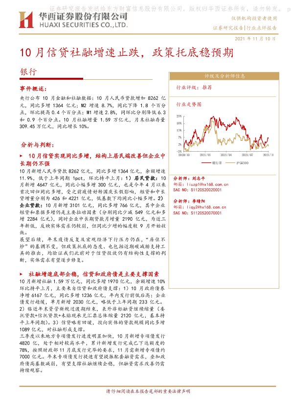 【华西证券】【20211110】10月信贷社融增速止跌,政策托底稳预期-4页
