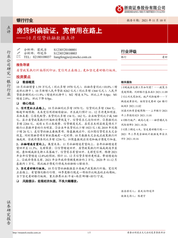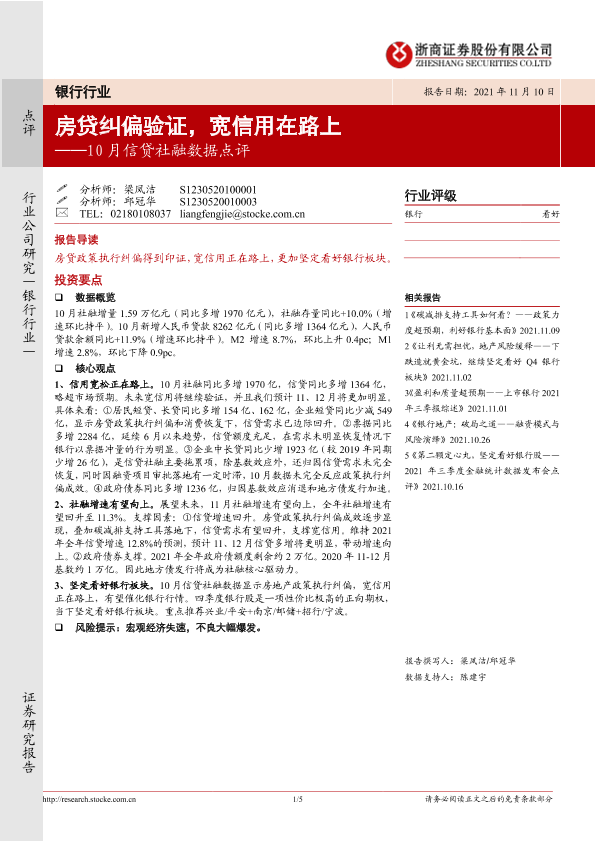 【浙商证券】【20211110】10月信贷社融数据点评:房贷纠偏验证,宽信用在路上-5页