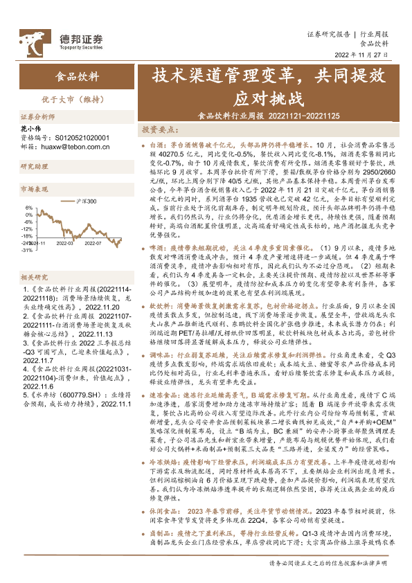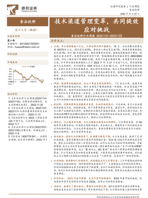 【德邦证券】【20221127】食品饮料行业周报:技术渠道管理变革,共同提效应对挑战-17页