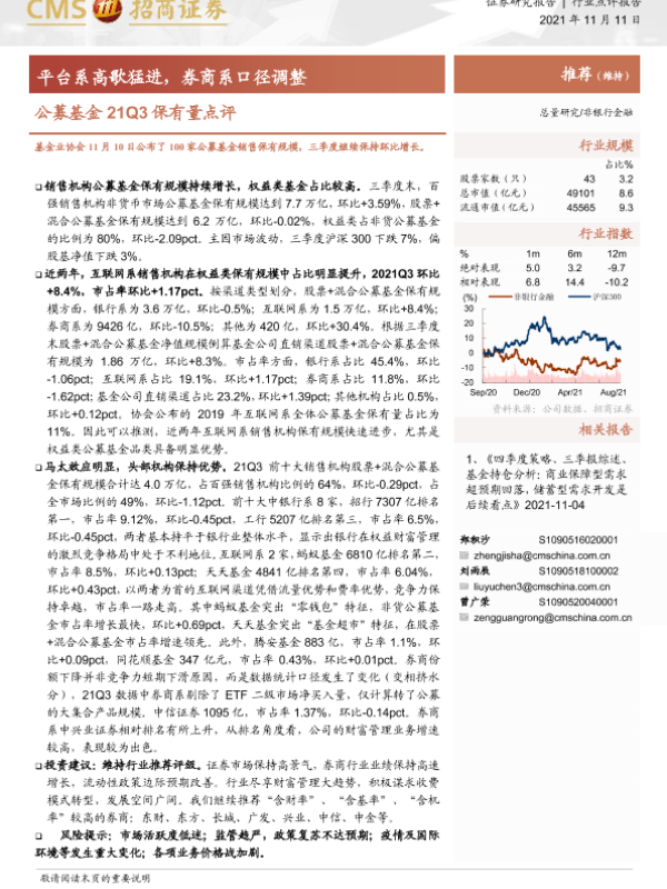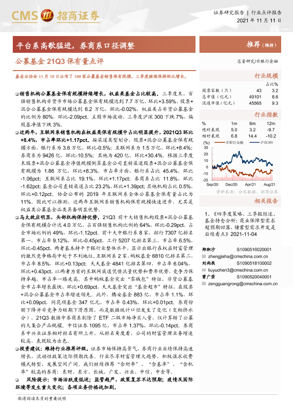 【海通证券】【20211111】公募基金21Q3保有量点评:平台系高歌猛进,券商系口径调整-4页
