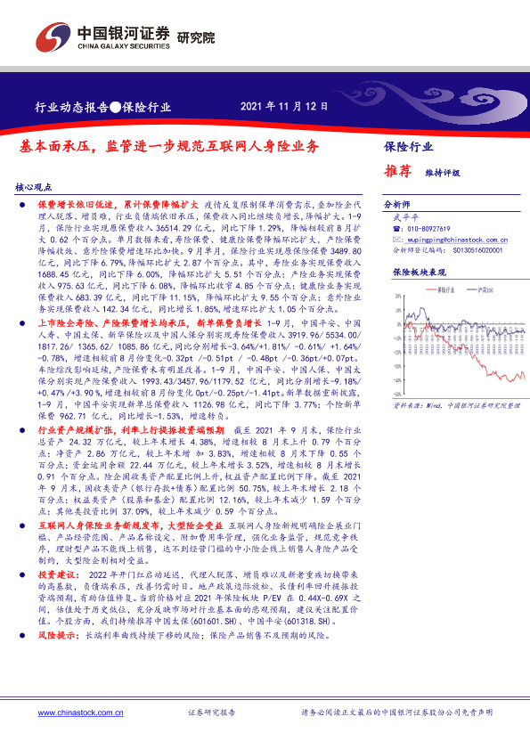 【银河证券】【20211112】保险行业:基本面承压,监管进一步规范互联网人身险业务-19页