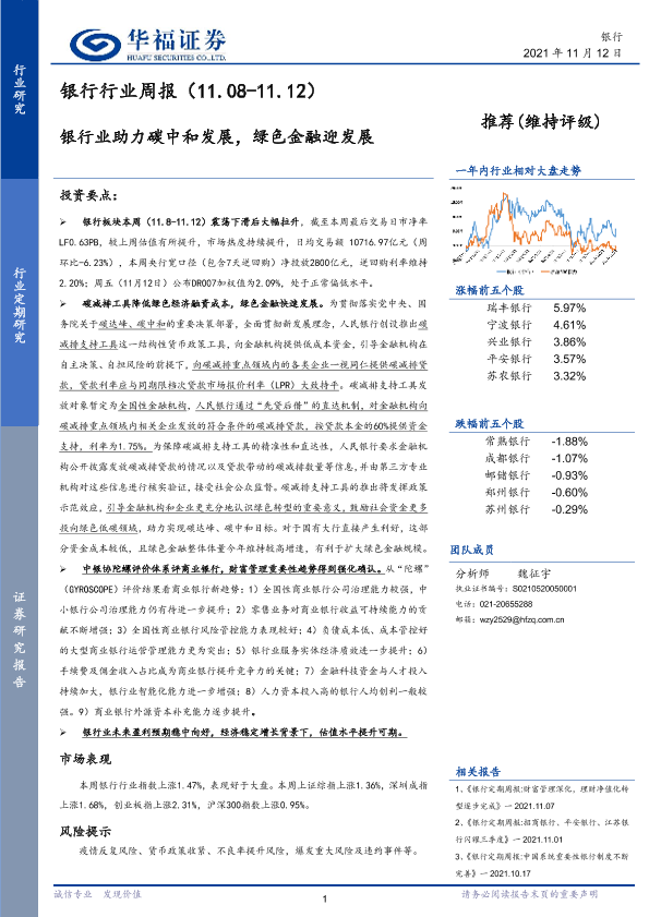 【华福证券】【20211112】银行行业周报:银行业助力碳中和发展,绿色金融迎发展-17页