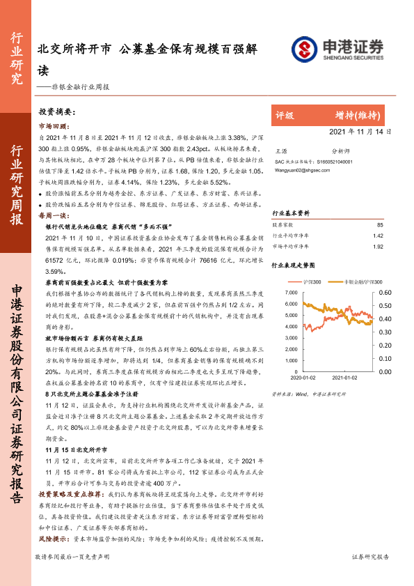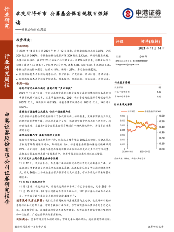 【申港证券】【20211114】非银金融行业周报:北交所将开市 公募基金保有规模百强解读-13页