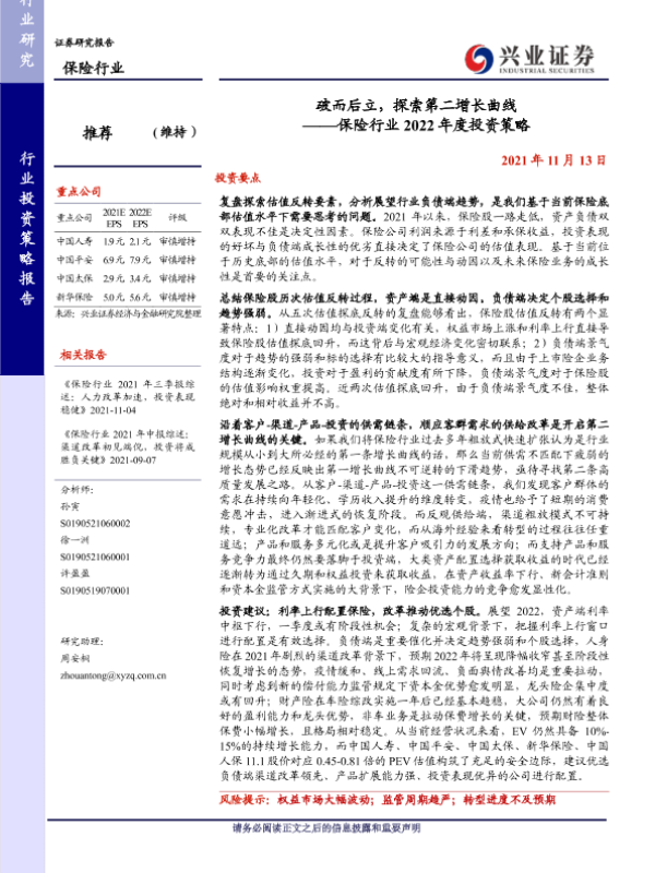 【兴业证券】【20211113】破而后立,探索第二增长曲线——保险行业2022年度投资策略-58页