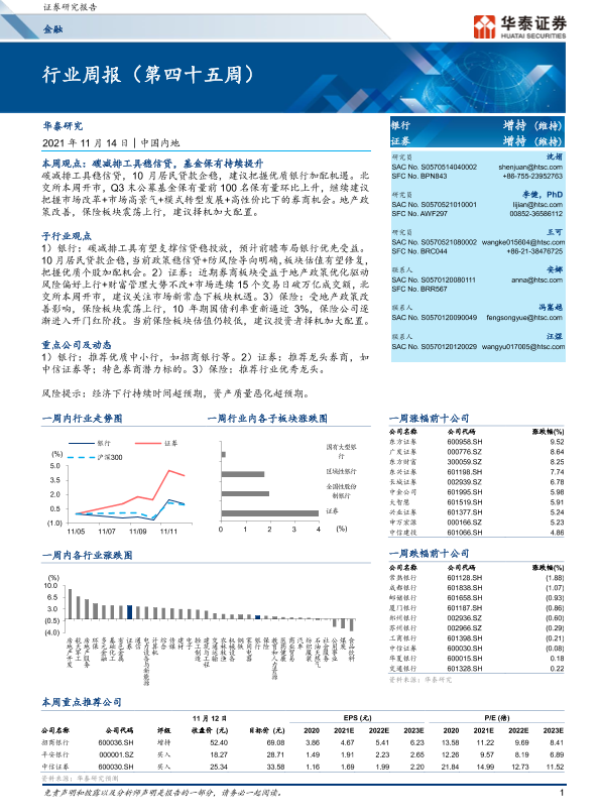 【华泰证券】【20211114】金融行业周报(第四十五周)-25页