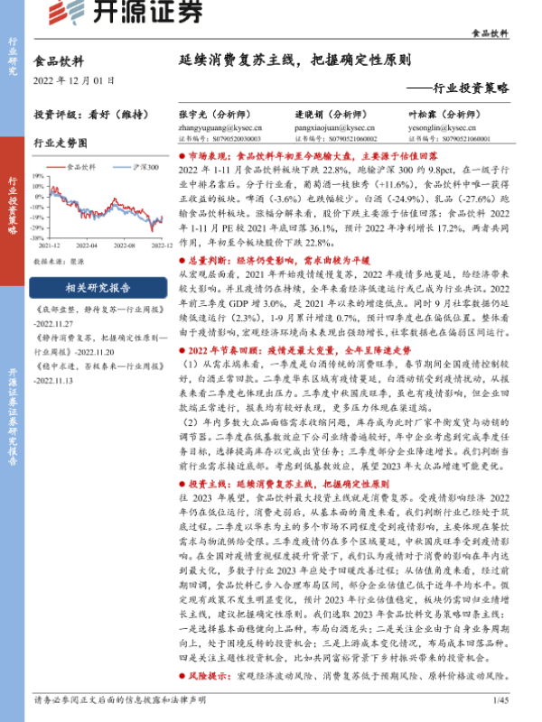 【开源证券】【20221201】食品饮料行业投资策略:延续消费复苏主线,把握确定性原则-45页
