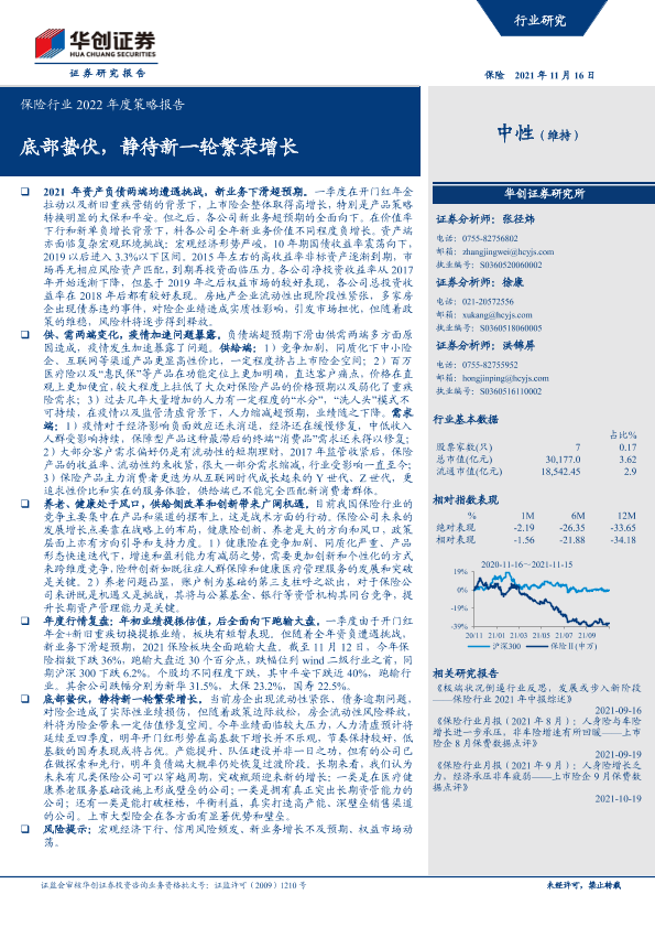 【华创证券】【20211116】保险行业2022年度策略报告:底部蛰伏,静待新一轮繁荣增长-21页