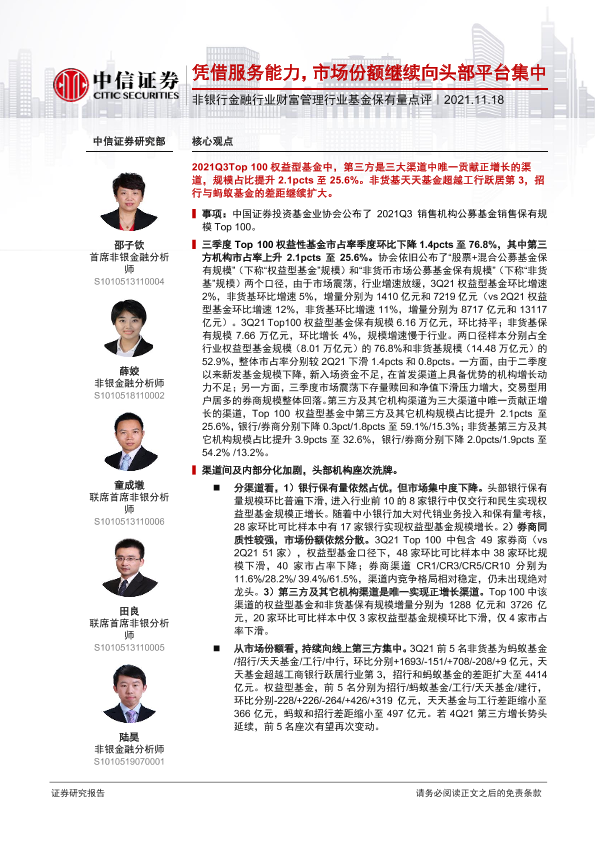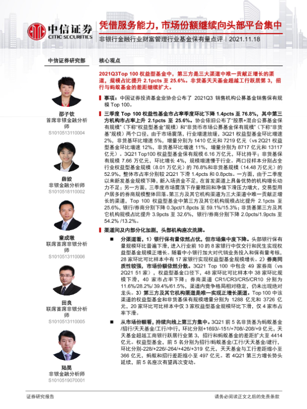 【中信证券】【20211118】非银行金融行业财富管理行业基金保有量点评-11页