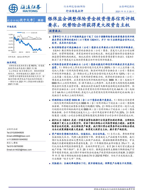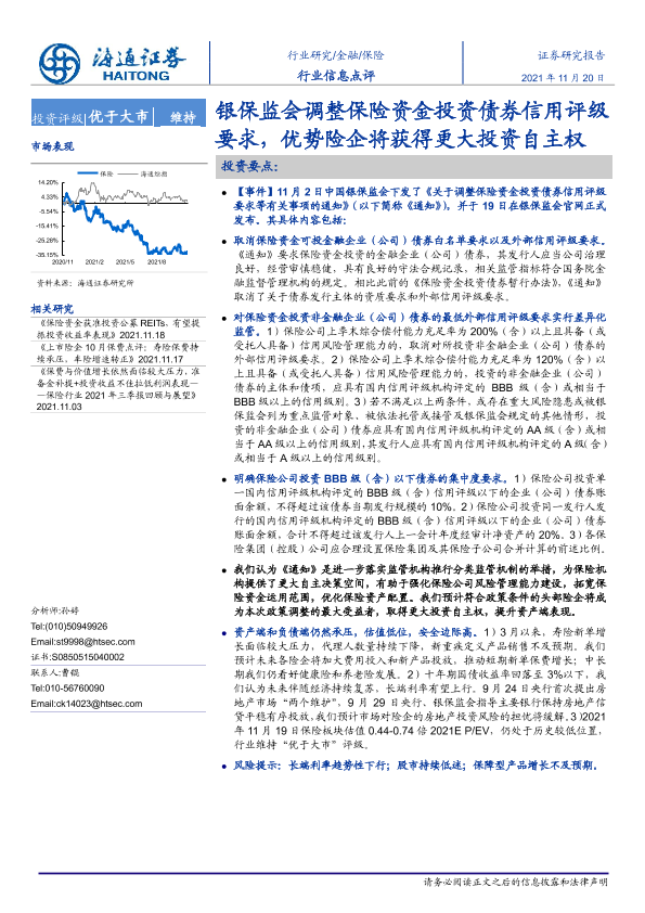 【海通证券】【20211120】银保监会调整保险资金投资债券信用评级要求,优势险企将获得更大投资自主权-4页