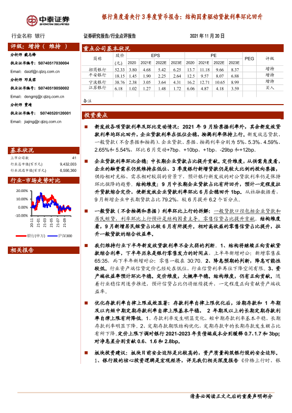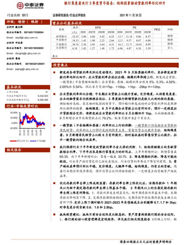 【中泰证券】【20211120】银行角度看央行3季度货币报告:结构因素驱动贷款利率环比回升-10页