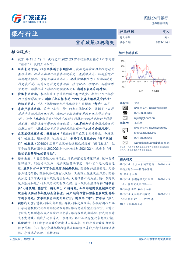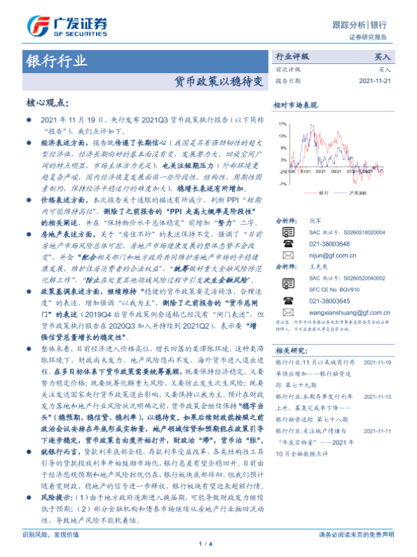 【广发证券】【20211121】银行行业跟踪分析:货币政策以稳待变-4页