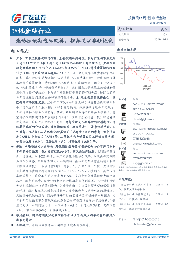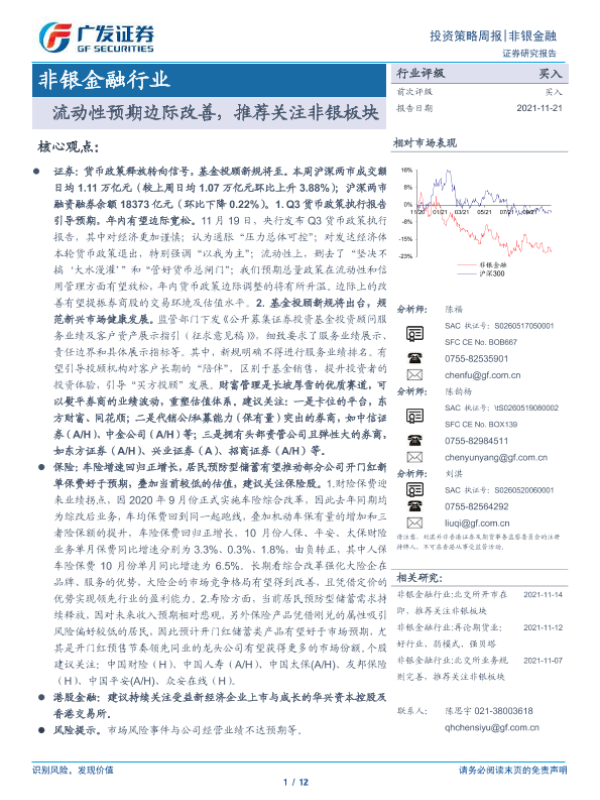 【广发证券】【20211121】非银金融行业:流动性预期边际改善,推荐关注非银板块-12页