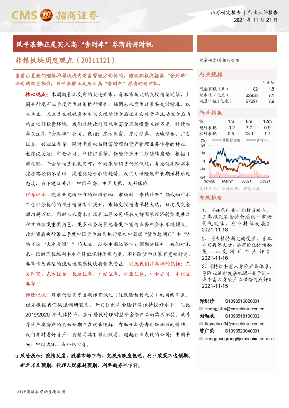 【海通证券】【20211121】非银板块周度观点:风平浪静正是买入高“含财率”券商的好时机-3页
