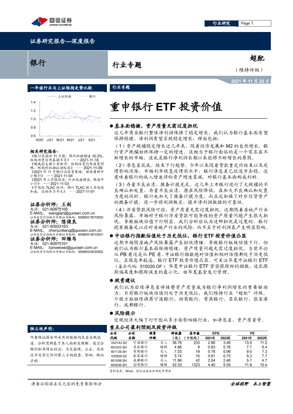 【国信证券】【20211122】银行业专题:重申银行ETF投资价值-17页