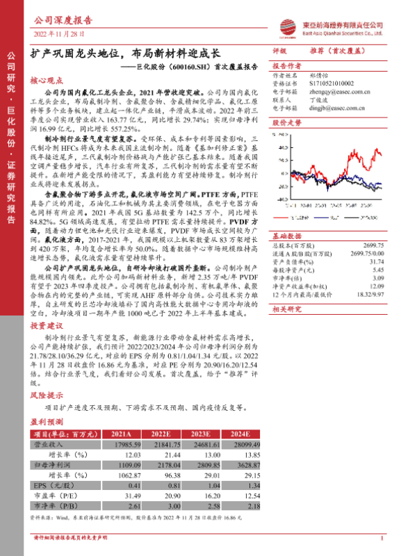 【东亚前海证券】【20221128】首次覆盖报告:扩产巩固龙头地位,布局新材料迎成长-28页
