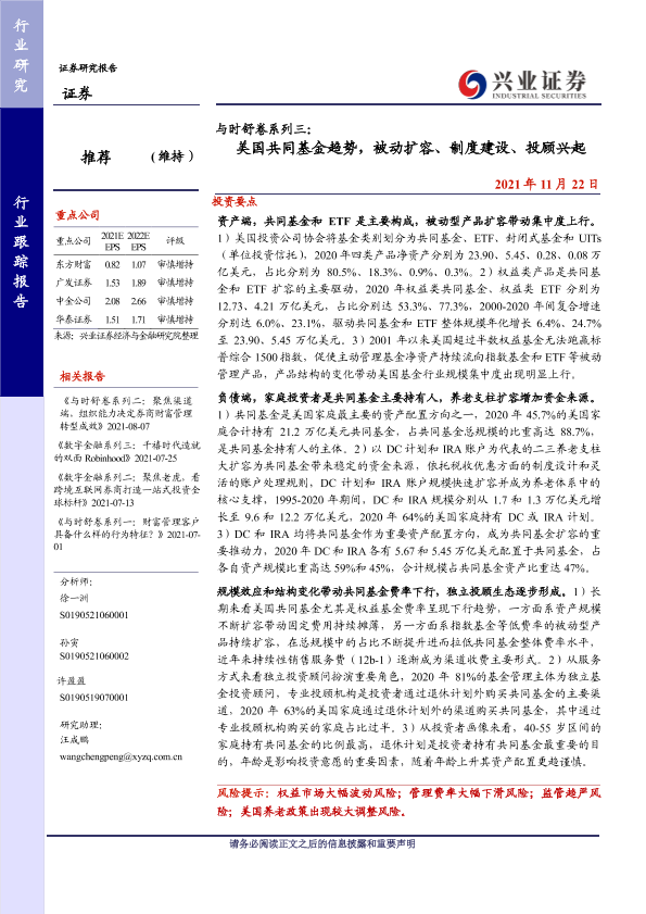 【兴业证券】【20211122】与时舒卷系列三:美国共同基金趋势,被动扩容、制度建设、投顾兴起-20页