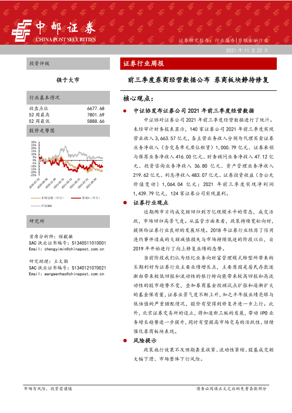 【中邮证券】【20211122】证券行业周报:前三季度券商经营数据公布 券商板块静待修复-11页