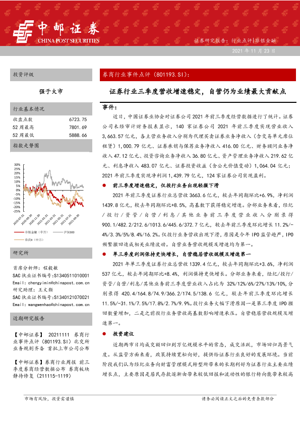 【中邮证券】【20211123】券商行业事件点评:证券行业三季度营收增速稳定,自营仍为业绩最大贡献点-4页