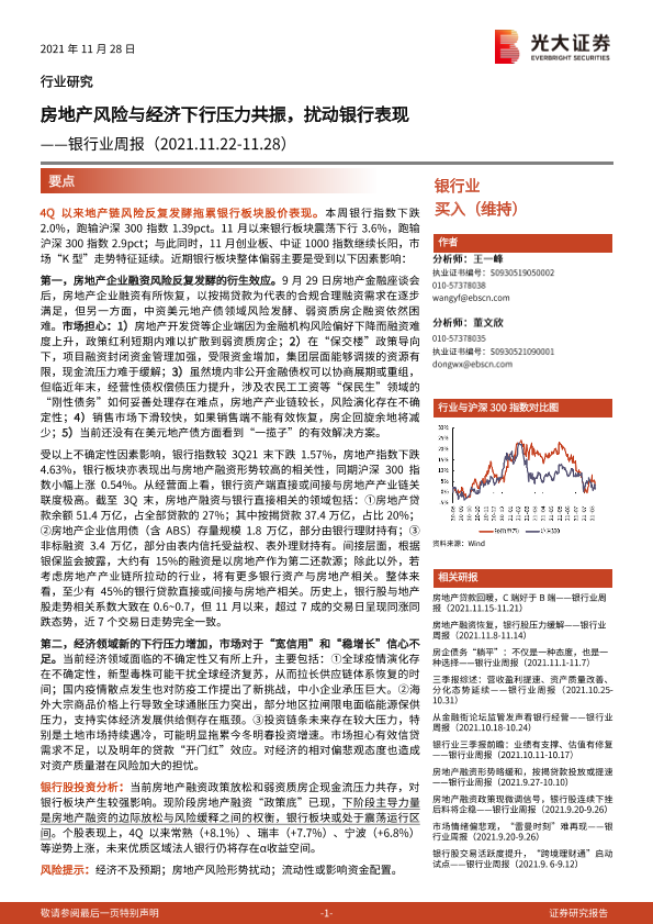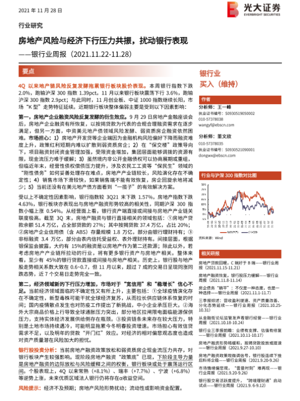 【光大证券】【20211128】银行业周报:房地产风险与经济下行压力共振,扰动银行表现-11页