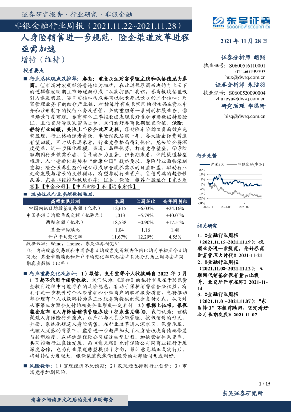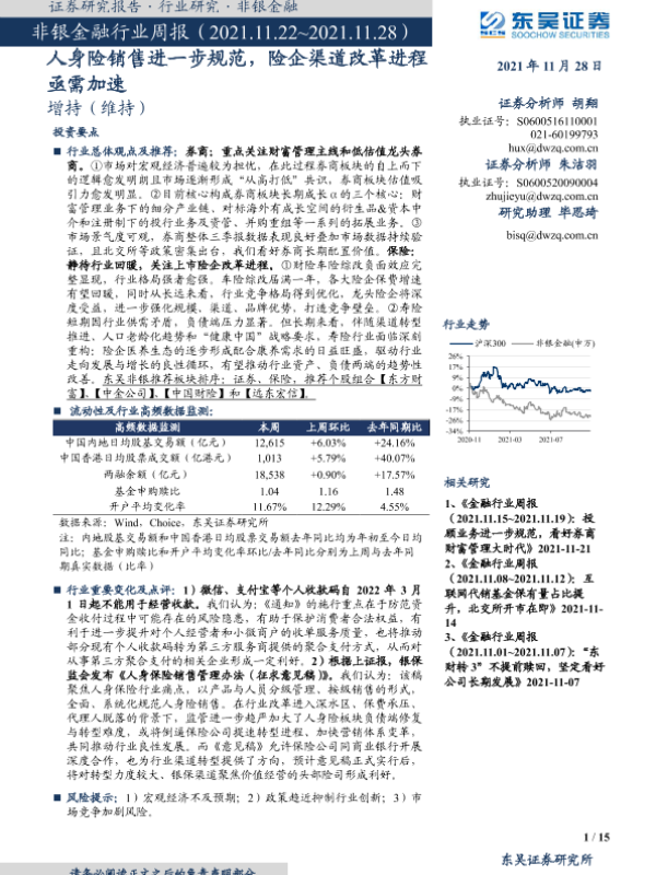 【东吴证券】【20211128】非银金融行业周报:人身险销售进一步规范,险企渠道改革进程亟需加速-15页