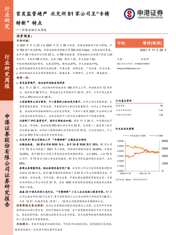 【申港证券】【20211128】非银金融行业周报:首发监管趋严 北交所81家公司呈“专精特新”特点-15页