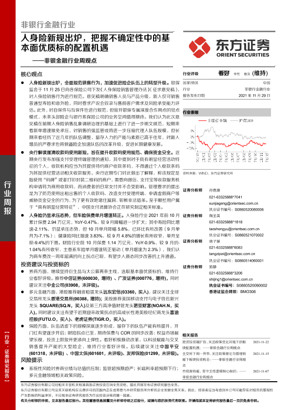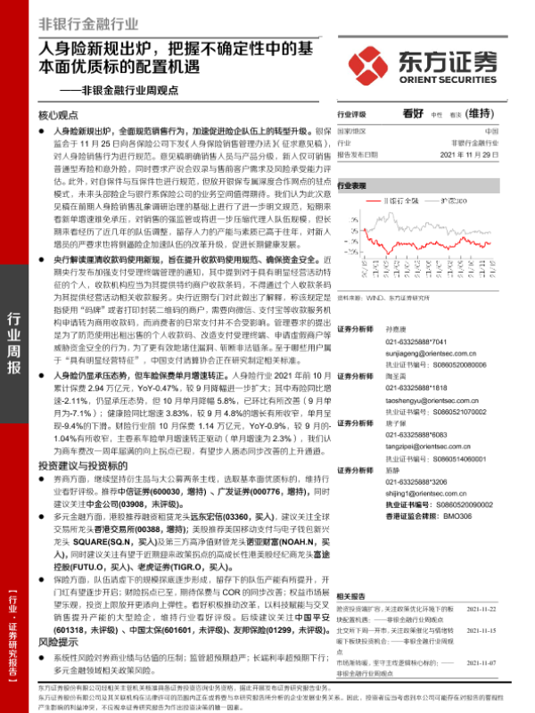 【东方证券】【20211129】非银金融行业周观点:人身险新规出炉,把握不确定性中的基本面优质标的配置机遇-11页