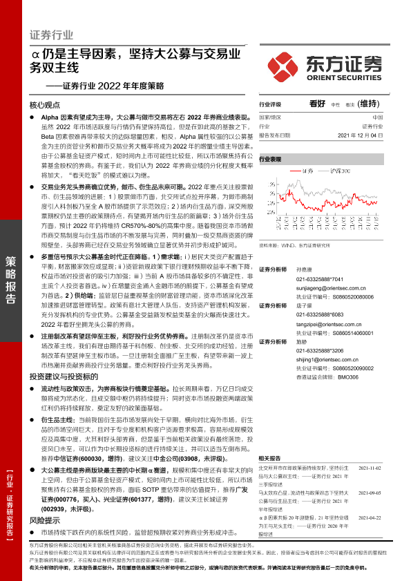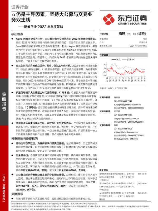 【东方证券】【20211204】证券行业2022年年度策略:α仍是主导因素,坚持大公募与交易业务双主线-44页