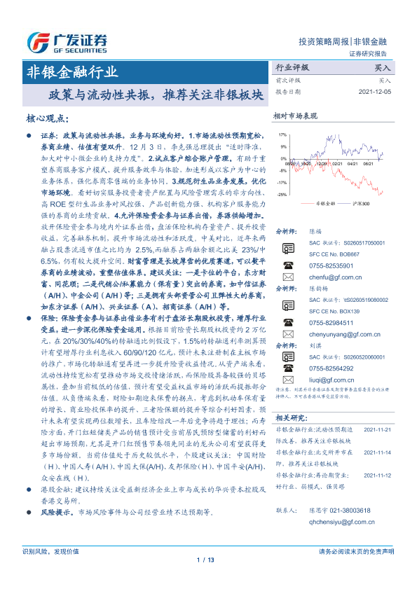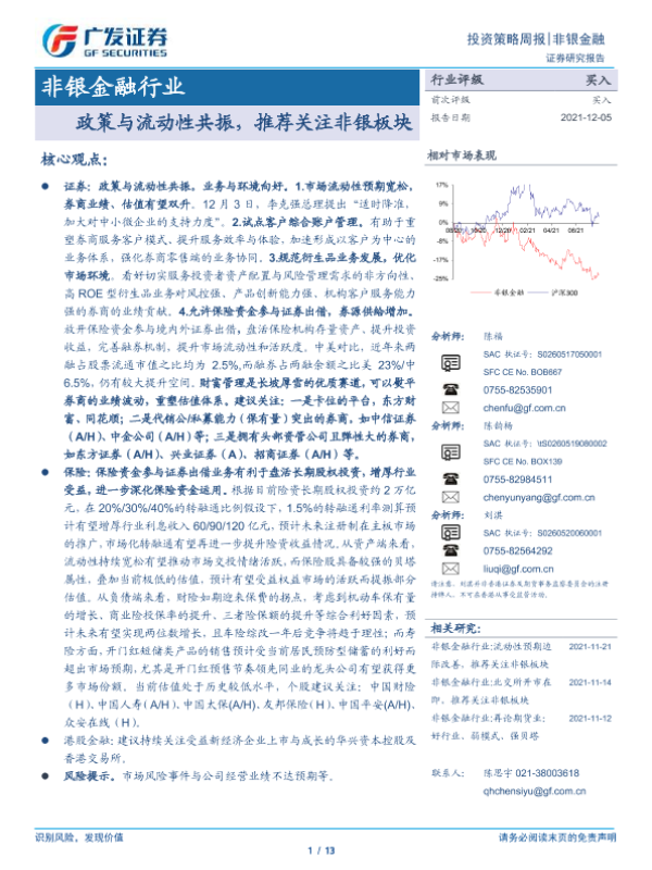 【广发证券】【20211205】非银金融行业:政策与流动性共振,推荐关注非银板块-13页